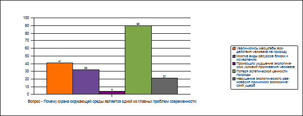 Из более чем шестисот опрошенных исчерпывающие ответы на все вопросы дали пять человек. Большинство анкет содержало неполные отрывочные ответы, а тридцать шесть участников анкетирования сдали незаполненные анкеты. Следует отметить, что не все вопросы оказались равнозначными для опрашиваемых. Так при ответе на первый вопрос лишь в 21% ответов содержался тезис о нарушении экологического равновесия, сложившегося в природных комплексах, в то время как 90% опрашиваемых отметили исчезновение видов растений и животных.