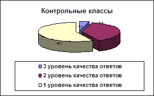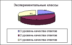 Анализ качества ответов показал, что в экспериментальных классах по сравнению с контрольными выше доля ответов второго и третьего уровней качества. В контрольных классах больше половины ответов отнесены к первому уровню качества знаний. Учащиеся просто перечисляют все известные им меры по рациональному использованию и охране природы, не раскрывая причин принятия таких мер.