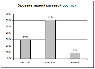 61 % (14 человек) имеют средний уровень знаний кистевой росписи;