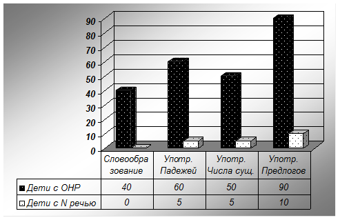 Сравним в диаграмме особенности грамматического строя детей с ОНР и детей без речевых нарушений