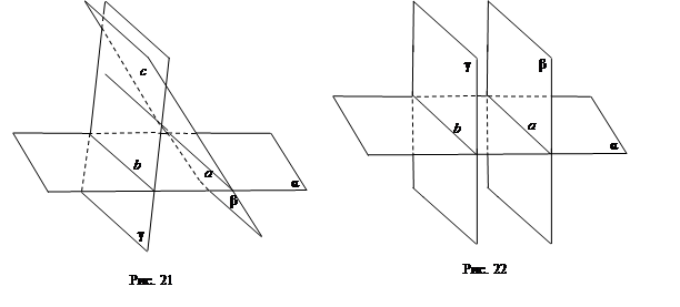 3.01. Сделайте чертеж: Плоскости α и β имеют общую прямую а, плоскости α и γ – общую прямую b, а плоскости β и γ – общую прямую с. Прямые а и b параллельны (рис. 21).