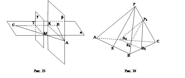 3.03. Сделайте чертеж: Сторона ВС треугольника АВС лежит на плоскости α. Через вершину А и точку М – середину стороны АС – проведены соответственно плоскости β и γ, пересекающие плоскость ∆АВС по прямым АК и МТ (рис. 23).