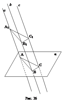 1.03. Сделайте чертеж: Плоскость α пересекает три параллельные прямые a, b и c соответственно в вершинах ∆АВС (рис. 13).