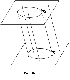 3. Даны две параллельные плоскости, пересекающая их прямая и окружность в одной из плоскостей (рис. 46). Через каждую точку Х окружности проводится прямая, параллельная данной прямой и пересекающая вторую плоскость в некоторой точке Х1. Что представляет собой геометрическое место точек Х1?
