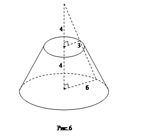 Пример 5: Найдите образующую усеченного конуса, если радиусы оснований равны 3 см и 6 см, а высота равна 4 см (рис. 6).
