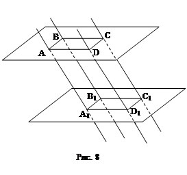 Пример 7: Четыре параллельные прямые пересекают параллельные плоскости в вершинах параллелограммов ABCD и A1B1C1D1 соответственно. Докажите, что параллелограммы ABCD и A1B1C1D1 совмещаются параллельным переносом (рис. 8).