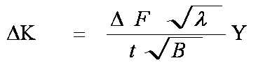 где DF- размах приложенной нагрузки, В- расстояние от оси приложения силы до края образца, l- отношение длины трещины, отмеренной от оси приложения силы, к В, t- толщина образца, Y- поправочная функция, учитывающая геометрию и размеры образца. Y- вычисляется по формуле(5):