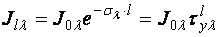 где J0l, Jll — интенсивности монохроматического излучения до и после прохождения слоя среды, Вт/стерад.