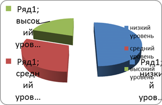 Средний уровень показало 6 детей (Марина В., Маша И., Таня У., Наташа Р., Данил К., Илья М.) – 30% детей
