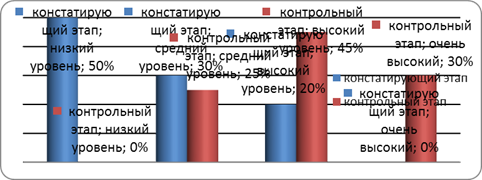 Высокий уровень - 9 детей - 45 %, ставящие на первое место интерес к игровой деятельности (Ира И., Толя С., Галя З., Вероника Ж.). Дети говорили о том, что им интересно играть с теми детьми, которых они выбирали, тем самым ставили на первое место интерес к совместной деятельности.