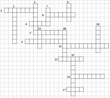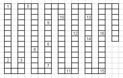 3) для контроля знаний (кроссворды для текущей, тематической или обобщающей проверки). Кроссворды для текущей проверки направлены на проверку базовых знаний обучаемых по текущему материалу. Кроссворды для тематической проверки направлены на проверку базовых и дополнительно полученных знаний по определенной теме. Кроссворды для общей проверки направлены на общую проверку знаний по большому блоку материала (за четверть, полугодие, год);
