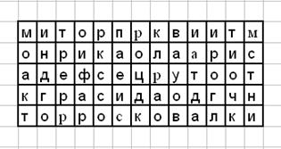 Данный тип кроссворда представляет из себя поле заполненное буквами. Во всем этом скоплении букв необходимо отыскать слова, которые приведены рядом в виде списка.