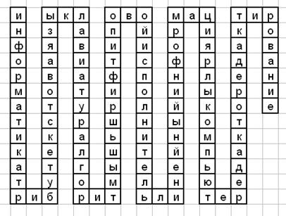 Данный вид игровых методик можно создавать средствами графического редактора в пятом классе при изучении серии уроков в программе Paint. Что позволяет отработать навыки копирования и вставки, перемещения, вставки надписи. Также в процессе работы формируются логическое и творческое мышление, при создании кроссворда важно проявлять терпение и аккуратность.