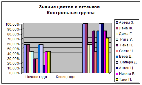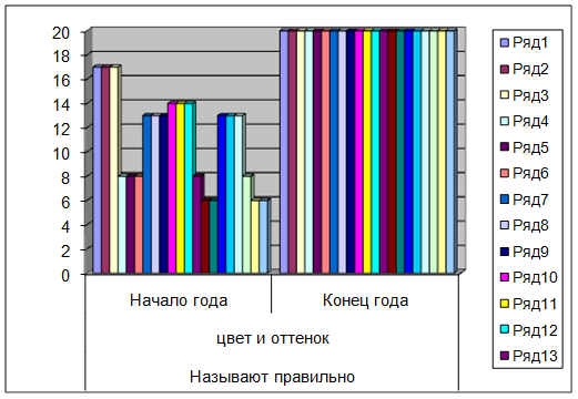 Дети четко усвоили названия цветов и их оттенков. Получили возможность сравнивать предметы по цвету, то есть выполнять элементарные мыслительные операции. Наша работа максимально приблизила детей к пониманию «языка цветов» (В.Кандинский), а тем самым обогатила их восприятие и сознание, открыла для них новые краски мира.
