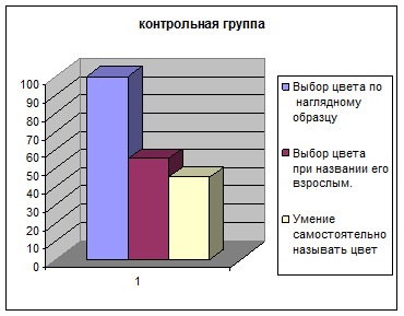 Изучая восприятие цвета по данной методике, мы выявили, что у детей обеих групп (экспериментальной и контрольной) знания о цветах на одинаковом уровне.