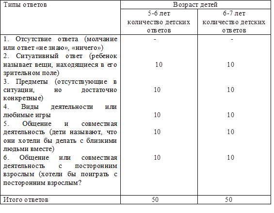 На данном этапе по методики изучения уровня самосознания И. В. Дубровиной, А. Г. Рузской и изучения игровых предпочтений, А. Г. Урунтаевой, показали, выявлено то, что дети 5-6 лет чаше отвечают достаточно конкретно и реже прибегают к ситуативным ответам. Большая часть детей 5-6 лет предпочитает совместную деятельность со взрослым. Это свидетельствует о том, что у них начали формироваться навыки общения в сюжетно-ролевой игре со взрослым (таблица № 10).