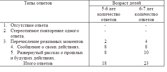Только 2-е из группы 5-6 лет продолжают перечисление режимных моментов. У большей части детей (90%) сформирована способность к развернутому рассказу о своих прошлых и будущих действиях.