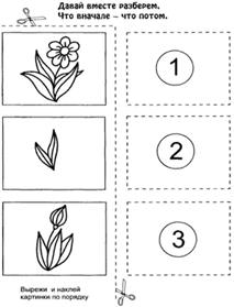Материал. Прямоугольные карточки, разделенные на две клеточки: одна с элементами узора, другая – пустая. Карточки с вариантами элементов узора, образующие пары к рисункам на полосках.