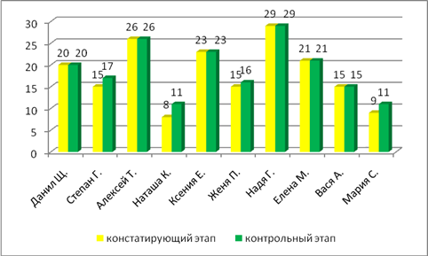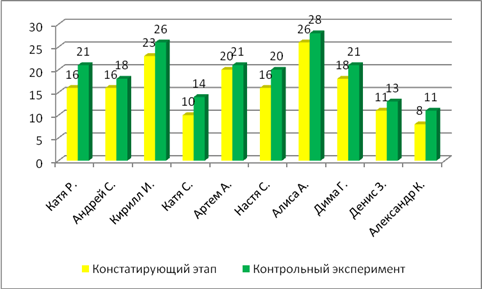 Индивидуальная динамика результативности контрольной диагностики в контрольной и экспериментальной группах представлена на рисунке 2 и 3.