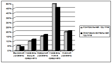 Таким образом, мы видим, что по результатам констатирующего эксперимента различия между контрольной и экспериментальной группой несущественны, в обеих группах преобладает уровень профильной направленности личности ниже среднего.