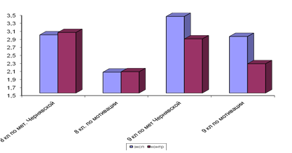 - динамика уровня мотивационной готовности для учащихся экспериментальной группы значимо выше, чем динамика уровня профессиональной готовности по методике А.П. Чернявской (p ≤ 0,05). То есть важнейшим психологическим условием формирования готовности к осознанному выбору будущего образовательного профиля и будущей профессии в подростковом возрасте является сформированность мотивационного компонента готовности.