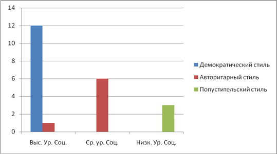 Сопоставляя уровень социализации ребёнка и стиль семьи, в которой он воспитывается, мы выяснили, что:
