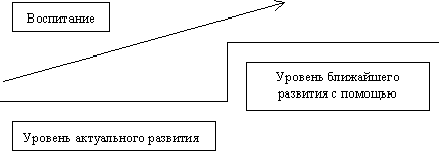 Воспитание, идущее впереди развития вверх- признается, а по прямой - нет. Поэтому задача воспитания состоит в том, чтобы создать зону ближайшего развития, которая в дальнейшем перейдет в зону актуального развития, способствовать развитию организма, индивидуальности и личности ребенка. Ребенка мы не просто переставляем со ступеньки на ступеньку, ребенок занимает активную жизненную позицию. Воспитание играет реша-ющую роль в развитии личности, оно оказывает влияние на внутреннее стимулирование ее активности в работах над собой, то есть в саморазвитии.