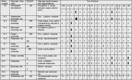 ИТ - высокие показатели по фактору "В", отличительные качества: абстрактность мышления, сообразительность, быстрая обучаемость. Существует некоторая связь с уровнем вербальной культуры и эрудицией.
