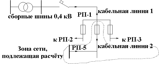 -Сопротивление элементов сети (трансформатора, кабелей) рекомендуется принять по [1] или [2], в случае невозможности нахождения величины Zпт для кабелей, можно принимать: Zпто=2,3*Zо(1) (т.е. принимать величину удельного полного сопротивления петли фаза-нуль в 2,3 раза больше активного удельного сопротивления жилы);