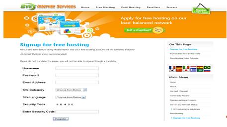 Для работы сайта в Интернете необходимо подобрать хостинг. Зарегистрируемся на бесплатном хостинге byethost., перейдя по адресу http://byethost.com/free-hosting/news и заполнив все необходимые поля (рис. 1).