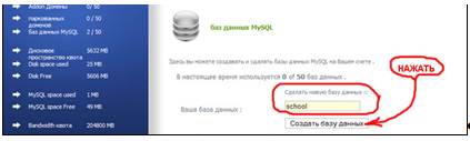 Рис. 3. Создание базы данных на хостинге. Шаг второй