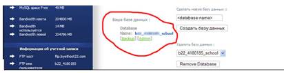 Рис. 6.Расположение базы данных на хостинге