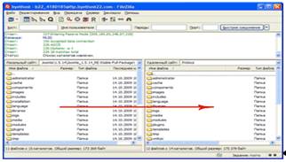 Закачка Joomla на хостинг производится с помощью FTP-клиенте, в нашем случае, FileZilla.