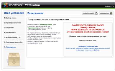 Joomla — разновидность конструкторского инструментария, который, будучи однажды инсталлированным на сервере, позволяет создавать и сопровождать веб-сайт. Для организации работы необходимо скачать Joomla 1.5.14 Stable Full Russian – систему управления контентом по адресу: http://joomlaportal.ru/downloads/joomla/Joomla_1.5.14-Stable-Full_Package-Russian.zip. Скаченный архив необходимо распаковать на своем локальном компьютере. Распакованное содержимое будет закачено на хостинг.