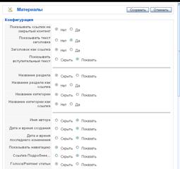 Кнопка «Настройки» вызывает окно параметров, в котором возможно наладить конфигурацию как всего материала сайта так и отдельной статьи (рис. 24).
