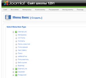 При создании нового пункта меню открывшемся окне необходимо указать тип.