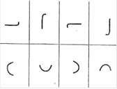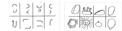 У каждого испытуемого наборы фигурок должны были быть одинаковыми. (Вариант задания представлен на рис.2.1). Школьники за 5-10 мин. пририсовывали к фигуркам все, что угодно так, чтобы получились предметные изображения. Учащиеся рисовали в удобном для них темпе, поэтому оканчивают работу в разное время.