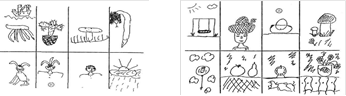 1 балл - стереотипные, примитивные рисунки, трудность вербализации при назывании картинки (рис.2.2 б);