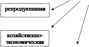 1. Репродуктивная функция – ее считают главной общественной функцией, в основе которой лежит инстинктивное стремление человека к продолжению своего рода, воспроизводство в детях численности родителей. Но роль семьи не сводится к роли «биологической» фабрики. Выполняя эту функцию, семья принимает участие в количественном и качественном воспроизводстве населения, т.е. является ответственной за физическое, психическое и интеллектуальное развитие ребенка, она выступает своеобразным регулятором рождаемости. В настоящее время, по причине преобладания городского образа жизни, увеличения занятости женщин, тяжелейшего экономического положения, рождаемость падает. Конечно, стоит отметить и связь общего количества разводов и абортов. Таким образом, может оказаться, что на двух пенсионеров будет приходиться один работник. С этой точки зрения государство заинтересовано в увеличении многодетных семей, создании для них определенных льгот. Но, смотря на это иначе, в частности с позиций тенденции увеличения рождения в многодетных семьях детей с патологиями, а также перенаселения из-за ограниченности ресурсов, увеличения неработающего населения и других факторов, можно предположить, что на данном этапе увеличение рождаемости и многодетных семей не есть позитивная сторона.