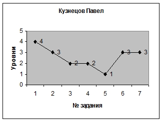 2 ребенка справились с заданием 3 уровня, 3 ребенка – с заданием 4 уровня.