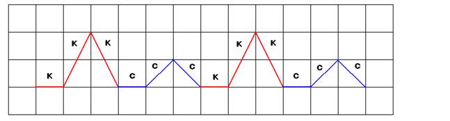Узор выполняется как двухцветный (используются, например, красный и синий мелки). Детям раздаются чистые листки в крупную клетку.