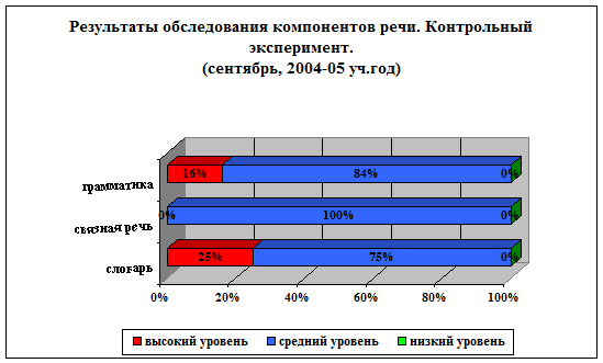 Контрольный эксперимент проводился в середине сентября, до конца мая месяца (до конца 2004-05 учебного года) еще есть время для формирования и развития необходимых компонентов речи .