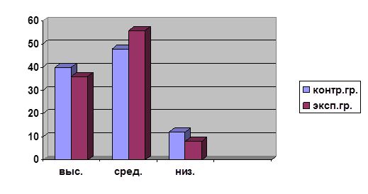 Характеристика оценки уровня интеллекта по методике Гудинаф-Харриса "Нарисуй человека" приведена в таблице 1. Полученные данные свидетельствуют, что уровень развития интеллекта в экспериментальной и контрольной группах примерно одинаков.