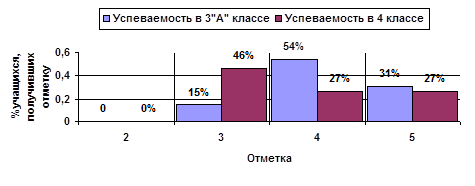 | Класс/отметка | 3 «А» класс | 4 класс |