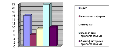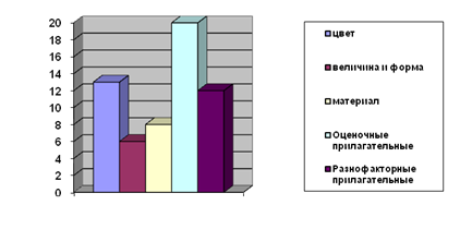 Меньше всего прилагательных, обозначающих материал, величину и форму. Эти данные отражены на рисунке 1.