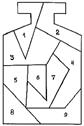 Найдите к каждому осколку точно такую же по форме часть на пузырьке. Запишите пары одинаковых частей. Какие два осколка не имеют пары и остались лишними?