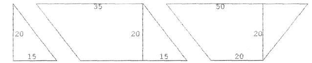 Постановка задачи. Учитель объявляет, что сегодня все ученики будут выступать в роли строителей. Требуется выполнить работу по настилке полов строящегося детского сада. Предлагается произвести настилку паркетного пола в игровом зале размером 5Л5Х8м. Паркетные плитки имеют форму прямоугольных треугольников, параллелограммов и равнобочных трапеций. Размеры плиток в сантиметрах указаны на рисунке.