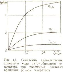 Свойства автомобильного генератора переменного тока определяются рядом характеристик, связывающих между собой следующие основные величины: фазное Uф, линейное Uл и выпрямленное Ud напряжения; фазный ток Iф; выпрямленный ток Iд нагрузки генератора: ток возбуждения Iв генератора; частоту вращения n генератора.