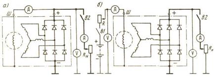 Рис. 15. Электрические схемы соединения генератора при снятии семейства внешних характеристик: