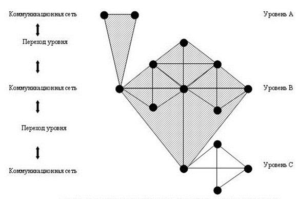 Представьте себя частью социальной сети коллектива класса. На одном уровне класс видится как помещение для людской сети, в которой каждый человек — точка. На другом уровне класс представляет собой точку в сети, состоящую из точек-классов, составляющих школу. Любое большое здание также может рассматриваться как коммуникационная сеть, в которой квартиры — это точки, а коридоры, лестницы и лифты — это связи.